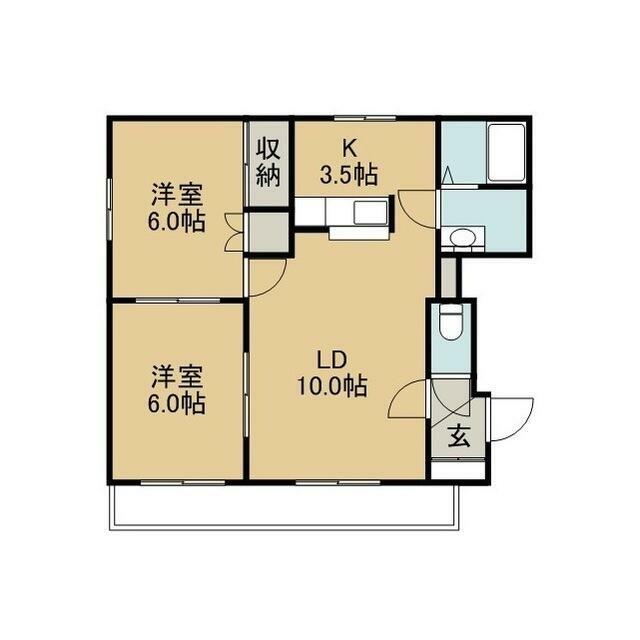 | 間取り | 2DK(LD10 K3.5 洋6 洋6) | 主要採光面 | 南 |